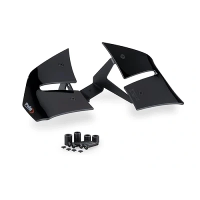 Puig 22416N D12 aerodynamic dual wing winglets designed to enhance stability, downforce and control in sporty riding with easy installation, Black