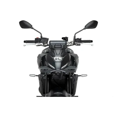 The Puig Naked front wing enhances the bike’s sporty and aggressive appearance thanks to its bold design, improving front aerodynamics and offering a more solid, compact and modern look without altering the original structure. Manufactured in Barcelona using innovative technologies and 3 mm matte-black ABS, a material resistant to impacts and vibrations; its solid structure guarantees durability and provides a high-quality finish that reinforces the bike’s sporty and functional style. Channels airflow toward the radiator and generates nearly 2 kg of downforce on the front wheel; provides anti-wheelie effect, reduces shimmy at high speeds, improves braking stability and adds extra control in quick direction changes. Quick installation without drilling using a 3 mm metal bracket; no mechanical knowledge is required, and it includes clear instructions, video tutorial and aerodynamic study to understand and fully benefit from the Naked wing’s performance. Compatible motorcycles: YAMAHA MT-07 2025; YAMAHA MT-07 Y-AMT 2025