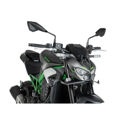 Naked front winglet designed to enhance aerodynamics and sporty aesthetics; channels air towards the radiator; provides up to 2 kg of downforce on the front wheel; improves stability, control, and safety in demanding riding conditions. Innovative design made of 3 mm matte black ABS; highly impact-resistant and lightweight material; offers an aggressive and elegant look; combines durability, aerodynamic efficiency, and style in a single high-quality piece. Improves dynamic performance thanks to anti-wheelie effect during acceleration, greater stability under braking, straight-line stability at high speeds (anti-shimmie), and better control in quick direction changes with optimized safety. Fast and easy installation without mechanical knowledge; mounted using a 3 mm thick metal bracket; no drilling or modification of critical parts required; includes clear instructions, aerodynamic study, and online video tutorial. Compatible motorcycles: KAWASAKI Z900 2025; KAWASAKI Z900SE 2025