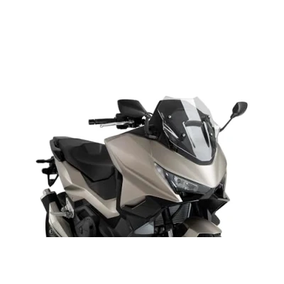 The Puig 22583 V-Tech Line Sport screen enhances sporty styling and aerodynamics; its angular shape guides airflow to minimize turbulence; made from high-impact PMMA for maximum durability. With dimensions of 420 x 385 mm and a thickness of 4 mm, it delivers structural stability and a 140 mm reduction compared to the OEM screen; tested in the wind tunnel to ensure a noticeable aerodynamic improvement during use. Its rounded profile ensures a tidy, consistent visual integration; UV resistance stops the screen from becoming cloudy; it installs quickly and easily with the OEM fasteners, without requiring any modification. Approved with ABE 38120 and TÜV certified, ensuring legal road use; its shape optimizes wind redirection to the sides, reducing rider pressure and improving comfort and stability at any speed. HONDA FORZA 750 2025