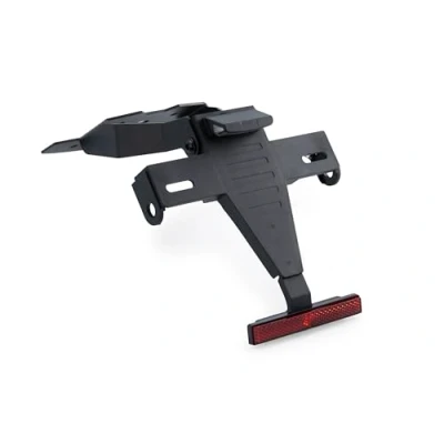 Replaces the original license plate holder with a raised support that provides a sportier and more streamlined look, combining steel components with epoxy paint finish and polyamide elements to reduce weight. Available in fixed or tilt-adjustable version depending on the model, it incorporates a locking system that secures the selected position and guarantees stability and safety while riding. Includes lighting kit with license plate light, offset bracket and homologated reflector; adjustable turn signal holder designed to reuse the original turn signals and license plate light. Simple assembly with detailed instructions; not compatible with side cases and does not include the plug&play wiring kit for the lighting group, available separately if the model allows it. Compatible motorcycles: KOVE NK 125R 2025; KOVE NK 125R 2026.