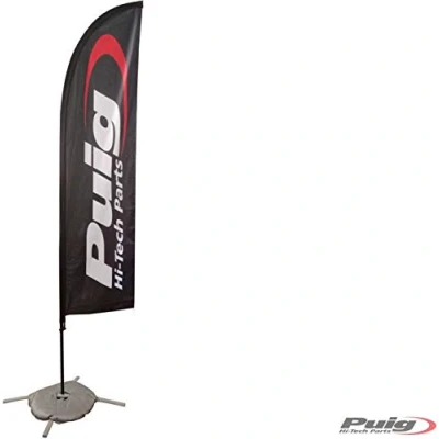 The Puig 3669N universal banner in black identifies you as an official distributor and is perfect for showcasing your presence in shops, trade shows, paddocks, or any motorcycle-related event. Made from durable materials, it includes a stabilizing base that can be filled with water or sand to ensure it stays upright even in challenging weather conditions like wind or rain. It features four movable legs that provide additional support and prevent tipping. Its smart design makes it suitable for both indoor and outdoor use without hassle. Measuring 200x90 mm, it offers excellent visibility without taking up much space. Easy to assemble with included instructions—ready in just a few minutes. This product is compatible with all motorcycles, it is UNIVERSAL.