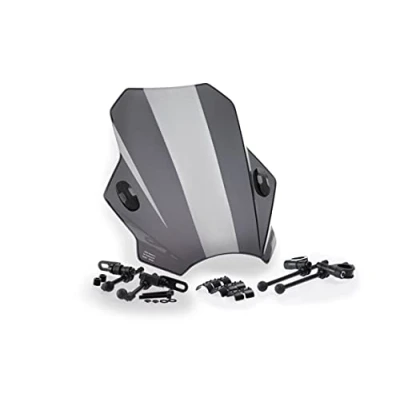 Renew the image of your motorcycle and protect yourself against possible inclement weather during the ride with the new universal bat windshield from Puig. Manufactured in 3mm polycarbonate, material with great resistance to possible impacts and impeccable Behaviour against the wind, will give your bike a greater aerodynamic capacity while enhancing its aesthetic line with a new more aggressive and sporty look. The clamping of the fairing will be excellent thanks to its two clamping points. The installation of the piece is very easy and comes with a complete kit. For those models that need it, an extra mounting kit is available. The part includes an ABE approval certificate 38188 and TÜV.