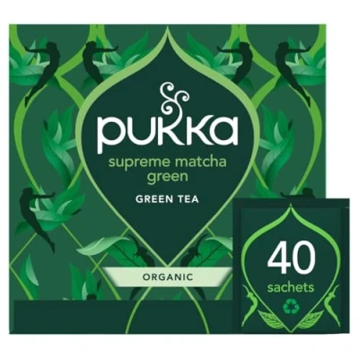 Pukka Herbs Supreme Matcha Green Organic Tea Bags Box [40 Bags] Energizing With Powder Ideal For Daily Vitality 40