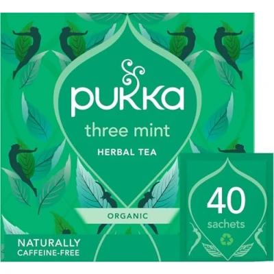 Pukka Herbs Three Mint Organic Herbal Tea Box 40 Plant Based Biodegradable drink Infusion With Spearmint, Peppermint, Fieldmint For Digestion Sleep Caffeine Free