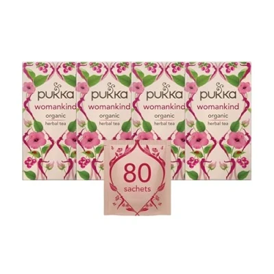 Pukka Herbs Womankind Organic Herbal Tea Box Chamomile, Shatavari, Vanilla, Cranberry, Rose, Hibiscus Ideal For Balanced Harmony Caffeine Free 4 Packs 80 Plant Based Biodegradable Bags