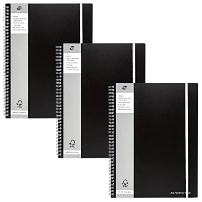 Pukka Pad, A4+ Jotta Notebook Pack of 3 Wirebound Notepads with 160 Perforated Pages 80GSM Paper 8mm Lines, Margin, and 4 Hole Punch 29.7 x 23cm, Black