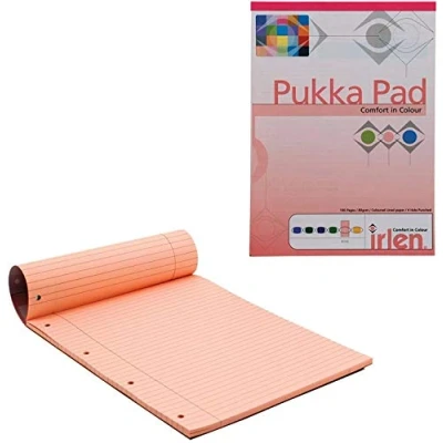 Rose refill pad for stylish notes. Headbound with card covers. Ruled lines are perfect for even, neat writing. 100 pages of 80gsm paper. Coloured paper is great for people with Dyslexia and people with Irlen syndrome. Size: A4 (210x297mm).