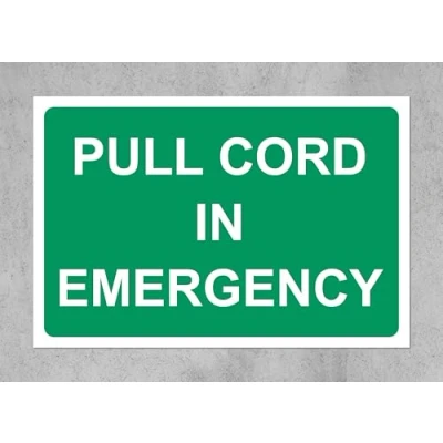 Pull cord in emergency safety sign 1mm Plastic sign Digitally printed for extra durability Drill and screw in position or use double sided tape to mount onto suitable surface.