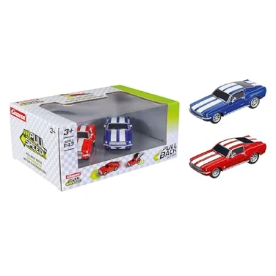 Pull & SPEED Carrera Ford Mustang '67 Twinpack Vehicles with Back Motor, Scale 1:43, Includes Racing Red Blue, from 3 Years