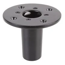 Robust Construction – Made from durable die-cast alloy for long-lasting performance. Sleek Black Finish – Powder coated for corrosion resistance and professional appearance. Easy Installation – Features four countersunk 5mm mounting holes for secure fixing. Compatible Size – Designed for 25mm pole mounts, ideal for P.A. speaker cabinets. Compact Dimensions – Measures 92mm diameter by 76mm height, fitting neatly into most setups.