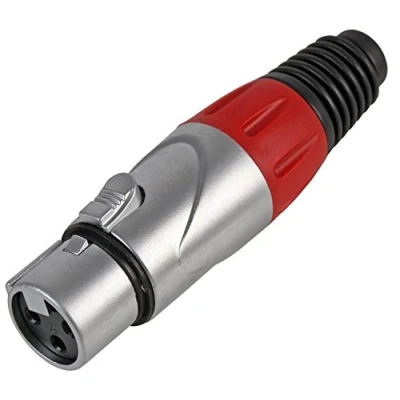 Professional Audio Connector: 3-pin metal XLR socket ideal for microphones, audio equipment, and stage applications. Secure Latching: Latching mechanism ensures a reliable connection and prevents accidental disconnection. Durable Construction: Nickel-plated contacts with a robust metal body provide long-lasting performance. Easy Cable Mount: Solder termination design with rubber strain relief accommodates cables up to 8mm in diameter. Stylish Design: Silver body with red boot adds a touch of colour and easy identification on stage or in studio setups.