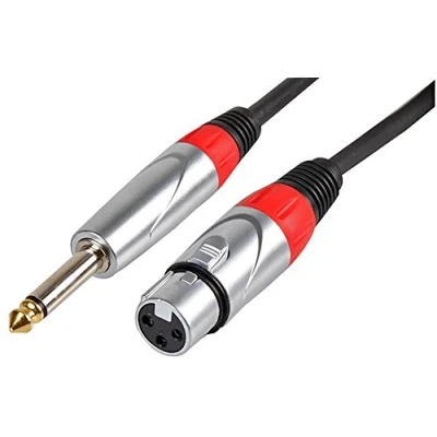Professional Audio Lead – High-quality 6.35mm (¼") mono jack plug to 3-pin XLR socket, perfect for instruments, microphones and unbalanced audio connections. Low Noise Performance – Single-core screened cable design helps minimise hum and interference for clean, reliable sound. Durable Metal Connectors – Heavy-duty metal XLR socket and jack plug with matt silver finish, red boot and robust rubber strain relief for long-lasting use. Pure Copper Conductors – Ensures excellent signal transfer and dependable audio quality during live gigs, studio work or rehearsals. Flexible 6m Cable – Black 6mm O.D soft PVC jacket provides flexibility and durability, ideal for stage, home studio, PA systems and general audio setups.