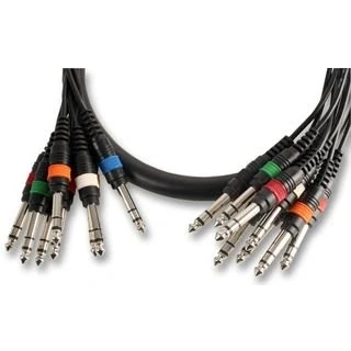 8-way 3 pole 6.35mm (¼") jack plug loom designed to reduce cable-clutter in live events or recording studios. Suitable for balanced signals Colour coded rubber rings for easier identification High quality nickel plated connectors with black rubber strain reliefs Helical shielded cable, Manufacturer: Pulse