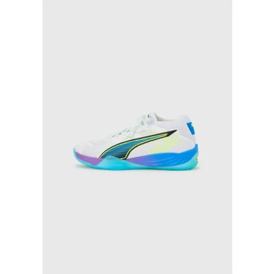 Puma Eliminate Nitro 4 Unisex Handball shoes, Size: 15, White/glowing red/ultra blue shoes