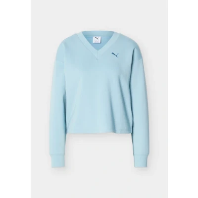 Puma Elevated Comfort V NECK CREW Sweatshirt seafoam Sale at Zalando UK | Outer fabric material: 38% cotton, 5% elastane, 10% viscose, 47% polyester | Sale order at Zalando UK! Size: Large. Color: Seafoam. Pattern: plain.