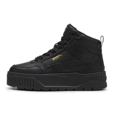 Regular fit; Coated leather and synthetic upper; Lace closure; Rugged rubber outsole; Platform style; Mid boot