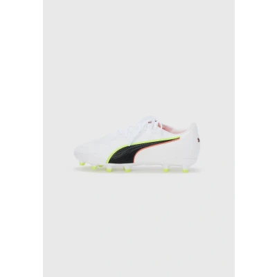 Puma KING 20 Match FG/AG JR Unisex Football boots firm ground, Size: 1.5, White/glowing red/yellow alert shoes