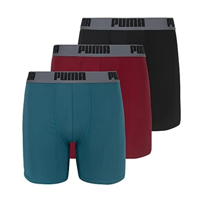 PUMA Men's 3 Pack Performance Boxer Briefs, Red/Grey/Teal, large
