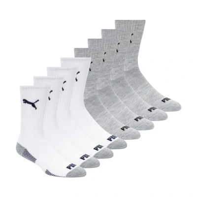 PUMA Men's 8 Pack Athletic Cushioned Crew Socks, White/Grey, 9 13 UK