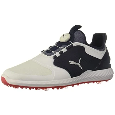 PUMA Men's Ignite Pwradapt Caged Disc Golf Shoe, White Silver Peacoat, 9 UK