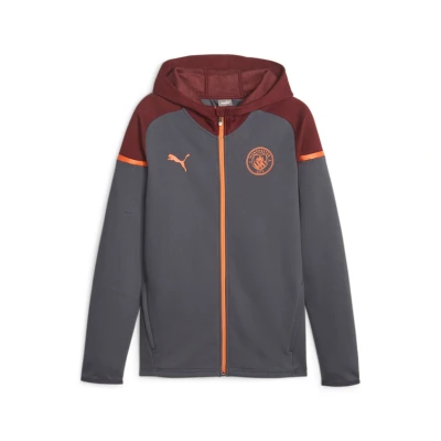 PRODUCT STORY: Rep City off the pitch just like the players do with this Man City Casuals tee. Emblazoned with the crest of the team, make your allegiance to the team known. FEATURES & BENEFITS: Recycled content: Made with 20% recycled material excluding trims and decorations as a step toward a better future; Cotton in PUMA products comes from farms with a focus on sustainable farming such as water efficiency and soil health protection. Learn more: PUMA.com/FOREVER BETTER. DETAILS: Regular fit; Full length jacket; Fleece brushed jersey; Hood; Official team crest.