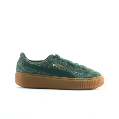 Puma Platform Elemental Green Suede Leather Womens Lace Up Trainers 362224 04 Size UK 4
