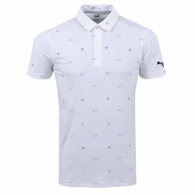 Mens Puma Golf H8 Golf Polo Shirt. Released to celebrate the 2022 US Open and inspired by the all too familiar love, hate relationship we all have with the game; this capsule of broken hearts and broken clubs will have all of us feeling seen. A technical golf shirt finished with a three button placket.