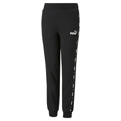 Regular fit; Ribbed waistband with internal drawstring for customised comfort; Side pockets for storage; Ribbed cuffs; Woven tape with repeated PUMA Wordmark and PUMA Cat Logo along both legs; PUMA No. 1 Logo in rubber print on left leg