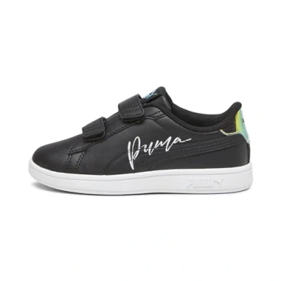 PUMA Smash 3.0 L Crystal Wings V PS Sneaker, Black White Team Aqua, 2.5 UK Child
