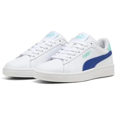 PUMA Smash 3.0 L JR Sneaker, White Vivid Blue Aquatic, 3 UK