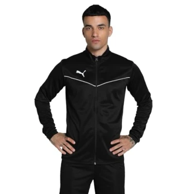 PRODUCT STORY Modern designs and high-performance materials unite in the teamRISE collection to meet the demands of your team, whatever level you play at. Look sharp as you train for match day in this polyester jacket with colour-contrast piping on the chest and iconic PUMA branding. DETAILS Regular fitStand-up collar and full-zip closureSide pocketsElasticated cuffsColour-contrast V-shape piping on chestPUMA Cat Logo heat transfer on right chest100% Polyester