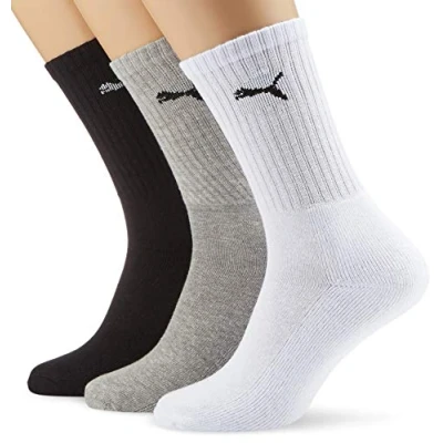 PUMA Unisex Sport 3p Socks, Grey/White/Black grey/White/Black, 38 UK