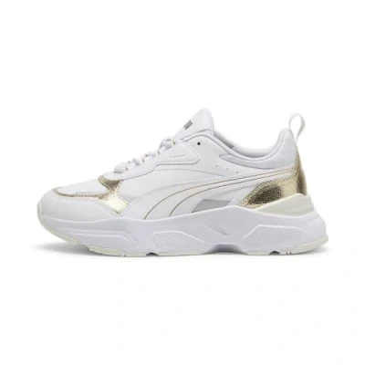 Puma Women Cassia Metallic Shine Sneakers, White Gold Silver Vapor Gray, 8 UK