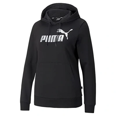 Puma Women's Ess+ metallic Logo Hoodie Tr Sweat, Black Silver, S UK