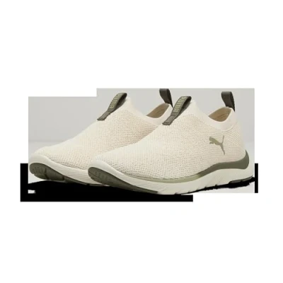 PUMA Women's SOFTRIDE REMI Slip ON Knit WN's Road Running Shoe, Warm White Dark Loden LUX Army, 6 UK