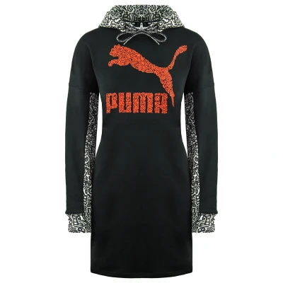Puma Womens X Mr. Doodle Long Sleeve Pullover Black Women Hooded Jumper Dress 598686 01 Cotton Size Small
