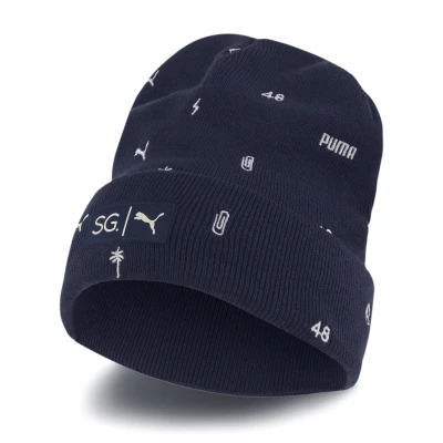 PUMA x Selena Gomez Beanie All Over Print Logo Hat Navy 022539 01