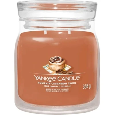 About This FragranceThe scents of vanilla, brown sugar, toasted nuts, and warm spices blend to create a sweet autumn delight.Fragrance Notes:Top: Cinnamon, Caramel, Clove Bud Mid: Nutmeg, Pumpkin Dough, Toasted Pecans Base: Vanilla, Brown Sugar, Warm MuskAbout Signature Medium Jar Candles Experience the Yankee Candle brand, totally reimagined. This refreshing take on the iconic Jar shape is designed to create the best experience to date. The two wick Medium Jar Candle is 368g and made with a premium soy wax blend. It perfectly enhances any moment at home on its own or as part of a beautiful candles cape. Hand-illustrated labels and vibrant wax colours are perfectly matched with the tried-and-true fragrances to create an inspired addition to your home. Burn time up to 50 hours. Height 11.4cm x Width 9.4cm.