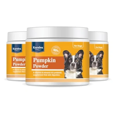 SUPER PREMIUM & 100% NATURAL - Our pumpkin powder is made from the finest pumpkin flesh that hasn't been treated with chemicals or pesticides. It's non GMO and contains no cheap fillers, no additives, colourings or preservatives. This is the best food topper for dogs. ONLY ONE NATURAL INGREDIENT - Superior quality Pure Pumpkin Powder for dogs and cats. Our high fibre supplement for dogs helps with healthy digestion, gut health, healthy stools, diarrhea, bum scooting anal gland health. DIARRHOEA & SCOOTING - Because this is a high fibre supplement for dogs, it is excellent for a healthy digestive system, healthy gut and microbiome. It can help stop diarrhea, promote anal gland health and stop your dog scooting. With prebiotic fibre, it can also help with constipation in dogs. EASY TO USE - Suitable for all breeds and sizes of dogs, our pumpkin powder for pets can be used dry as a healthy dog food topper, mixed with Karnlea Bone Broth or water to make a pumpkin puree for dogs, baked into dog biscuits, or made into a healthy cooling frozen treat for dogs. NATURAL PREBIOTIC FOR DOGS - Our natural tummy settler for dogs is full of prebiotic fibre, which feeds the good bacteria and probiotics in the gut. Works well with probiotics for dogs, and our other supplements, Karnlea Slippery Elm & Marshmallow root for dogs and cats, Karnlea whole goat milk powder for dogs and cats, and Karnlea Bone Broth.