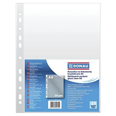 Punched Pockets DONAU PP A4 Crystal Clear 50 MICR 25 Pcs/Document Archiving/Type Crystalline/Kind Standard/Material PP/Colour Transparent/Format / Thickness (mm)