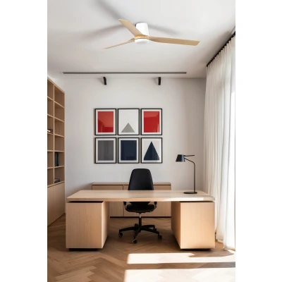 The Punt Tub Medium Ceiling Fan in matte white with maple accents adds a refined touch to any indoor environment. Designed with modern features, this fan ensures stylish performance throughout your space.