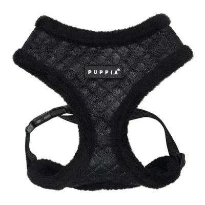 Puppia Douglas Dog Harness Over The Head Warm Winter Diamond Pattern Adjustable Chest for Small and Medium Dog, Black,