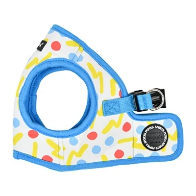 Fashionable Harness for your dog: Dotty and Zig pattern and solid schemed in Step-In Vest style dog harness Secure: Our harness is made of high quality materials and a durable buckle to keep your dog secure No-Pull / No-Choke: Reduce pulling, increase your control over your pup, and decrease stress on neck and joints Features: Puppia rubber label, back metal D-rings and buckle & hook-and-loop fastener closure Size: Small: 10.2" Neck, 12.6" Chest
