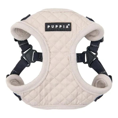 Puppia Irvin Comfort Dog Harness Step in Warm Winter Diamond Pattern Adjustable Neck and Chest for Small Medium Dog, Cream,