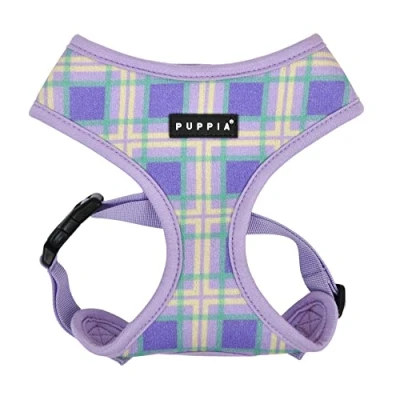 Fashionable Harness for your dog: Bright checkered pattern and solid schemed in Over-the-Head style dog harness Secure: Our harness is made of high quality materials and a durable buckle to keep your dog secure No-Pull / No-Choke: Reduce pulling, increase your control over your pup, and decrease stress on neck and joints Features: Puppia rubber label, back metal D-ring and adjustable belt with a buckle closure Size: Small: 10.2" Neck, 12.6"~17.3" Chest