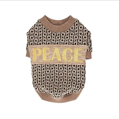 Geometric square pattern and solid schemed Decorated with "peace" embroidery on the back Ribbed neck, sleeves and bottom for comfort Washable 30° Puppia smart tag padent(qr code only) is included