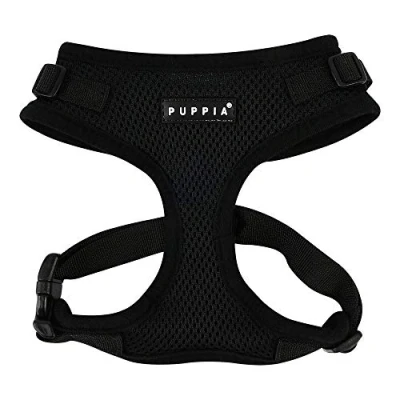Puppia Ritefit Dog Harness small and medium Adjustable Super soft in many colours Also usable as Puppy Anti Pull Lead, Black, S