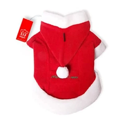Features santa hat (hood) with pompom ball Soft and warm winter coat Perfect christmas outfit Available in red and checkered red Size: M - Neck Girth - 11.8"; Chest Girth - 16.5"