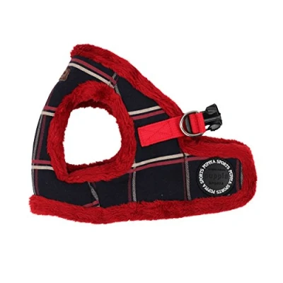 Checkered pattern and solid schemed harness Warm and cosy feel Step-in style Puppia luxury emblem Matching lead available.